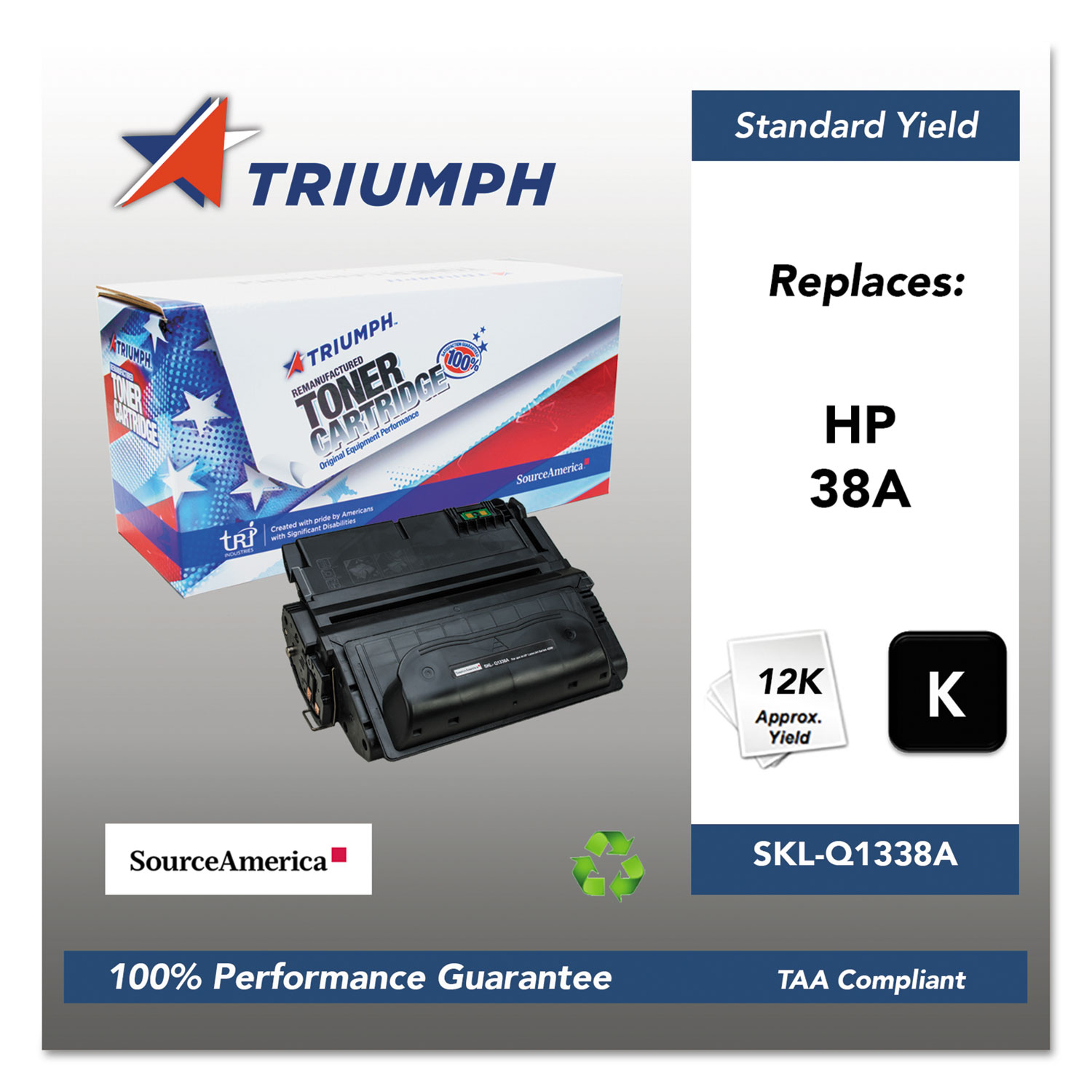 Remanufactured toner cartridge. Source America is the preferred brand of federal purchasers worldwide due to a strong performance history of reliability, value, sustainability and mission. Source America toner provides strategic opportunities to address a variety of customer needs including: significant savings, guaranteed performance, compliance with executive orders and free recycling solutions. Plus, every purchase creates jobs for people who are blind or have significant disabilitiesincluding wounded warriors. Device Types: Laser Printer; Color(s): Black; Page-Yield: 12,000; Supply Type: Toner.