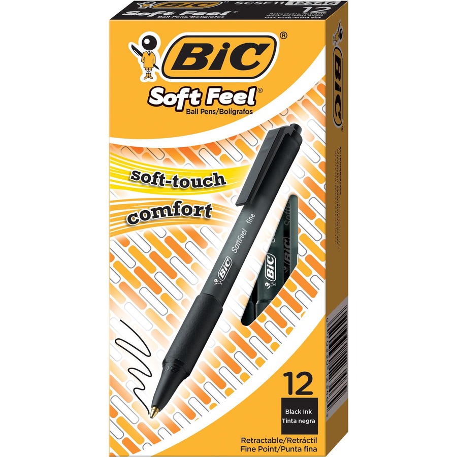 Retractable ballpoint pens feature soft feel barrel for ultimate in writing comfort and deliver precision performance. Convenient click action is simple with the top plunger. Barrel color indicates ink color. Pens are nonrefillable.