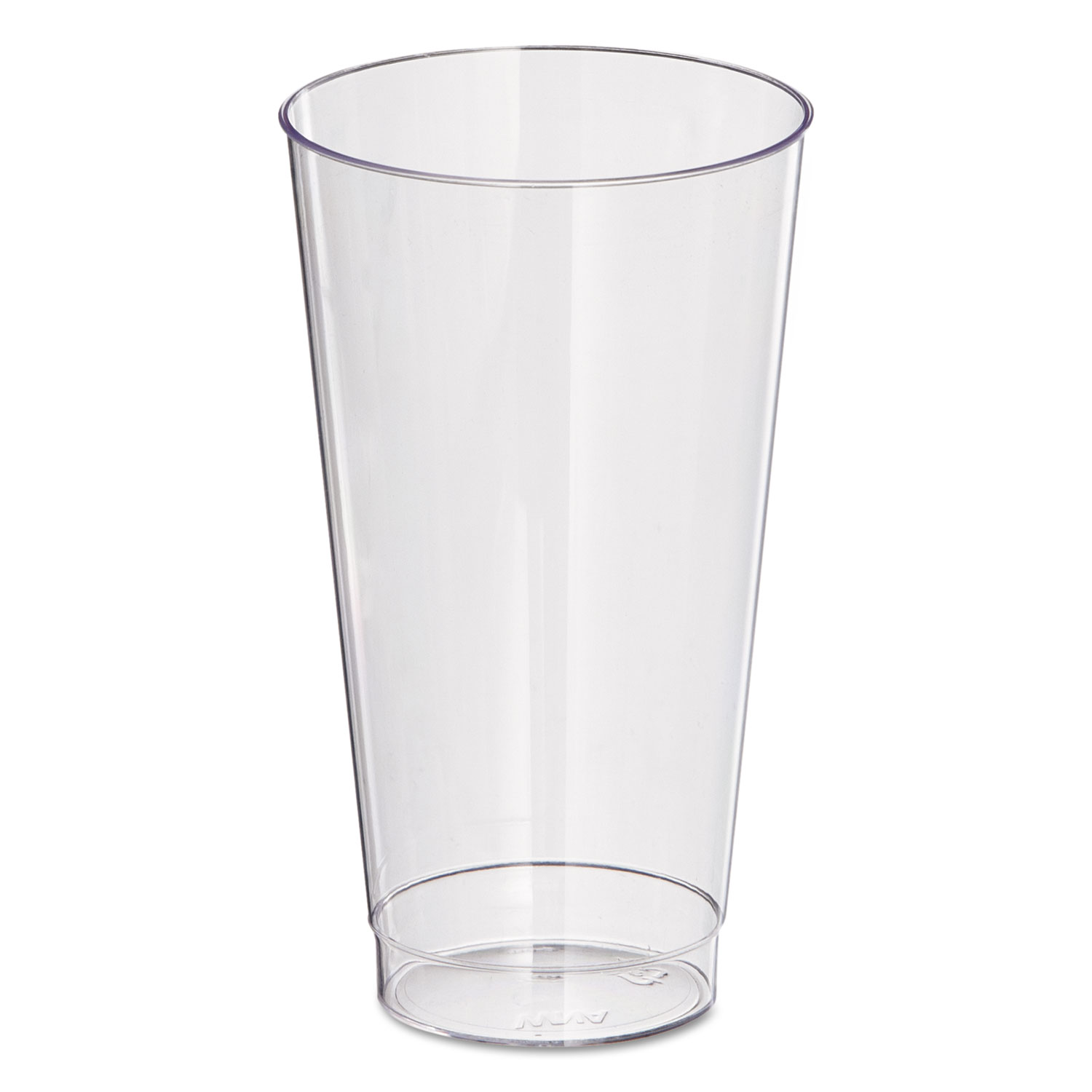 The clear plastic of these tumblers makes them look just like glass. Their rigid, hard plastic provides a sturdiness and strength that glass lacks. They offer the classic look of glass with the convenience of a disposable. They are perfect for serving beverages at parties. Cup Type: Tumbler; Interior Volume Capacity: 16 oz; Material(s): Plastic; Material Type: Plastic.