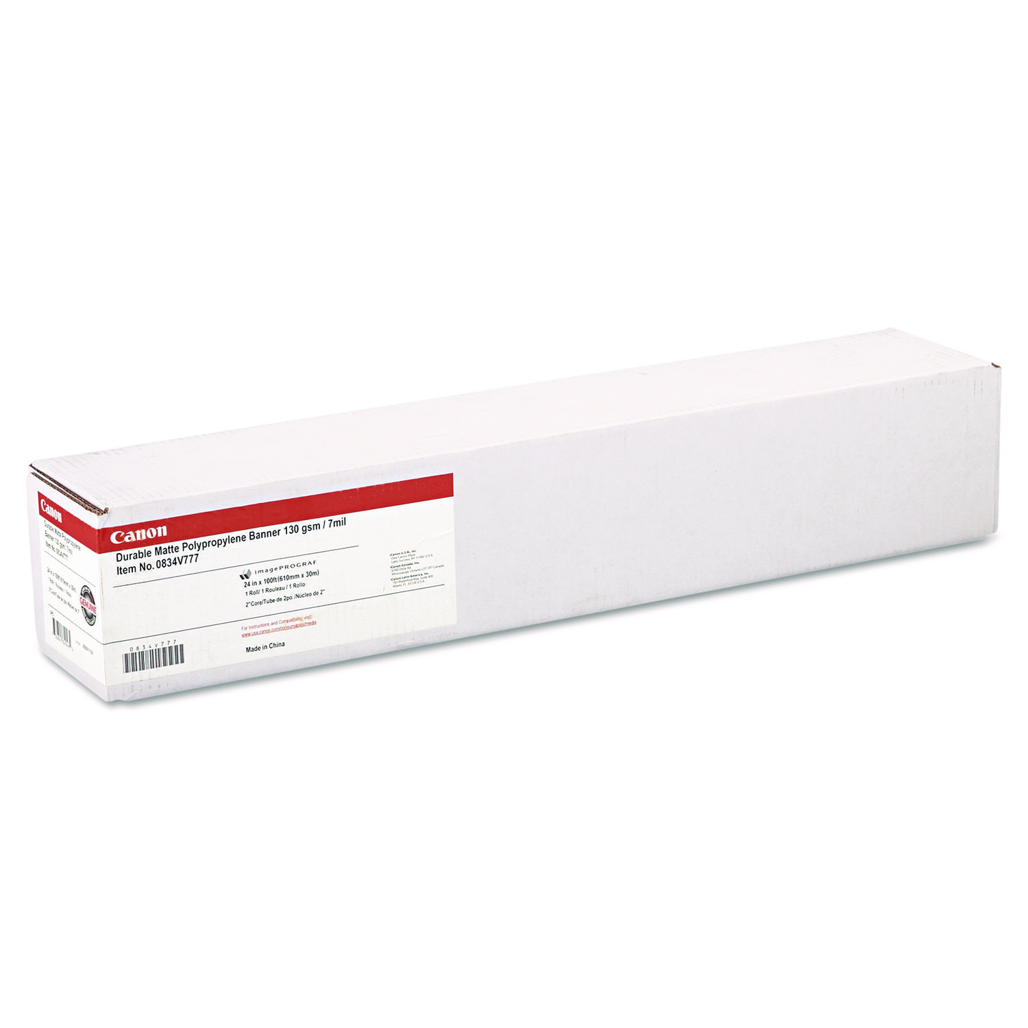 Banner is polypropylene based with a matte surface banner material. Provides excellent opacity and has a thin flexible paper like feeling making this item perfect for hanging without creasing. Perfect for use in window displays, entertainment centers, exhibit displays and trade shows. Tear-resistant. Sheet/Roll Size: 24" x 100 ft; Paper/Media Thickness (mil): 7 mil; Paper/Media Color(s): White; Color Family: White.
