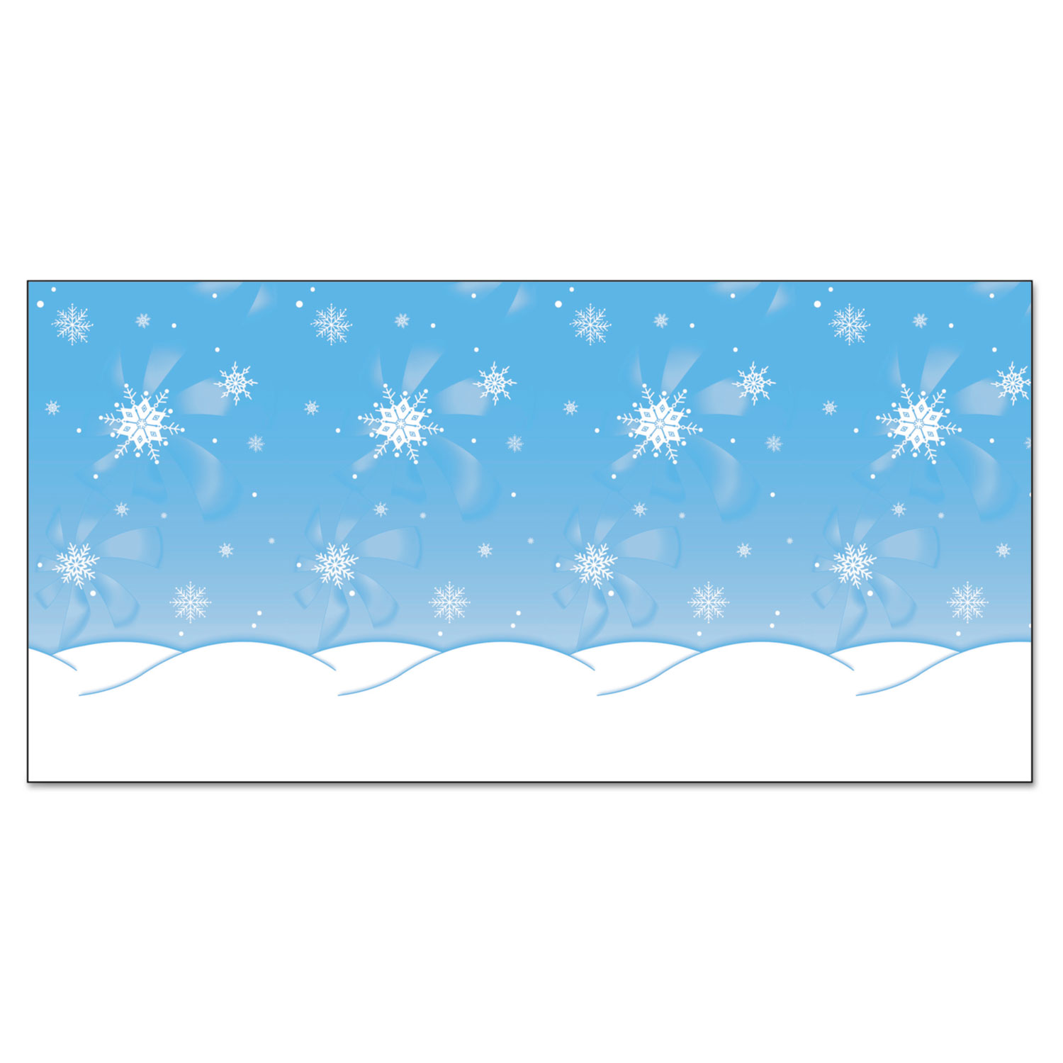 Add interest and excitement to that dull bulletin board. Made with specially-coated fade-resistant inks for long-lasting displays and bulletin boards. Also works great as table skirting or party decoration. Acid-free. Theme: Winter Time; Width: 50 ft; Height: 48".