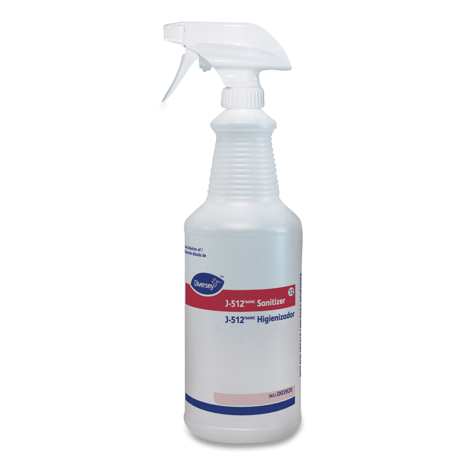 Spray bottles for J-512 sanitizer. Ideal for restaurants, dairies, food processing plants and bars. Due to the COVID-19 pandemic, the number of trigger sprayers included with the purchase of this item will be at the sole discretion of the manufacturer based on availability. Material(s): Plastic; Color(s): Clear; Interior Volume Capacity: 32 oz; Quantity: 12/Carton.