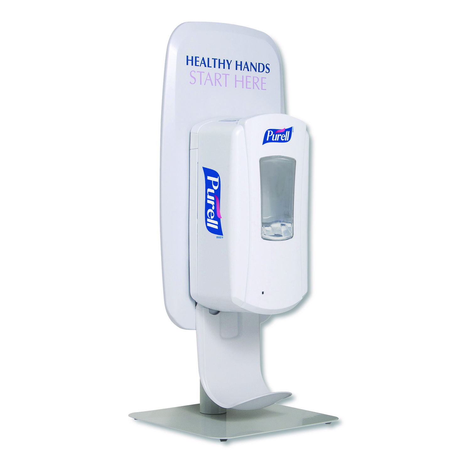 PURELL stand allows PURELL dispenser to be attached to a counter or table. Ideal for customer service, checkout and other locations. For Use With: PURELL® 1320-04, 1920-04, 1971-04, 2720-12; Color(s): White; Size: 3.79 x 17.68 x 9.18.
