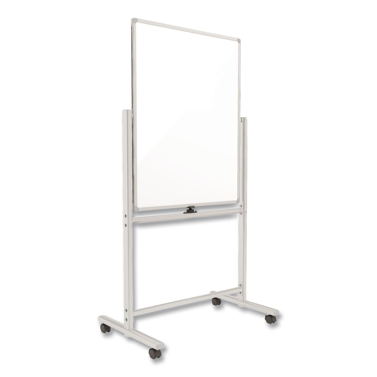 Designed with innovation in mind, this mobile whiteboard offers unparalleled convenience for on-the-go collaboration. The magnetic steel surface allows you to easily attach documents, notes, and visual aids, keeping all your materials in one easy-to-access place. The sturdy aluminum board ensures durability while maintaining a sleek, professional look. Whether you're in a dynamic office environment, a classroom setting, or even a home workspace, this whiteboard is your versatile partner in productivity. Board Surface Type(s): Dry Erase; Magnetic Board Surface: Yes; Surface Use Rating: Moderate Use; Surface Material: Steel.