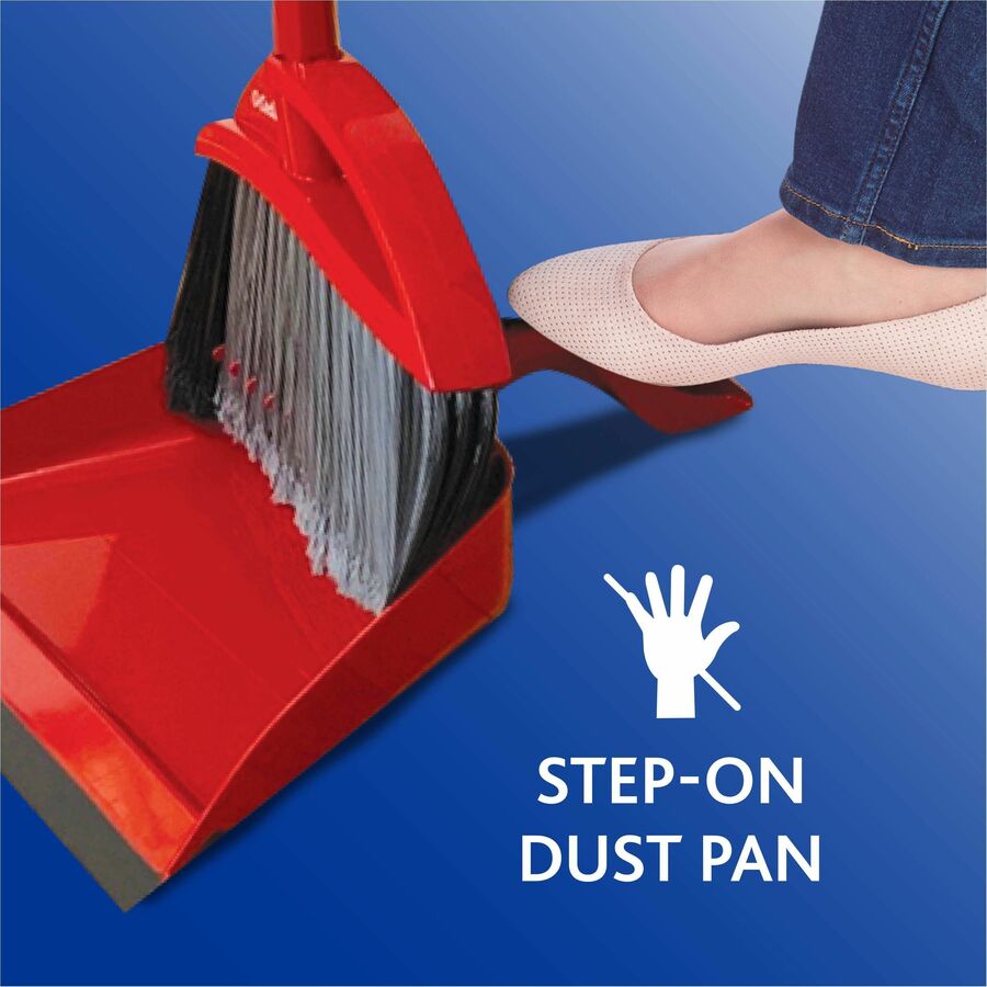 PowerCorner Pet Pro Broom with Step-On Dust Pan makes keeping up with animal shed a breeze. Made from a high percentage of recycled materials, it's equipped with V-shape bristles that are designed to clean and collect pet hair in a single sweep. Flare Tip Memory Bristles maintain shape. Included, advanced step-on dustpan seals to the floor for hands-free debris pickup, and integrated cleaning combs remove three times more hair. This broom and dustpan remove more than 99 percent of common household dust and dirt like long grain rice, sugar, hair and cereal in one sweep as tested at an independent accredited lab.