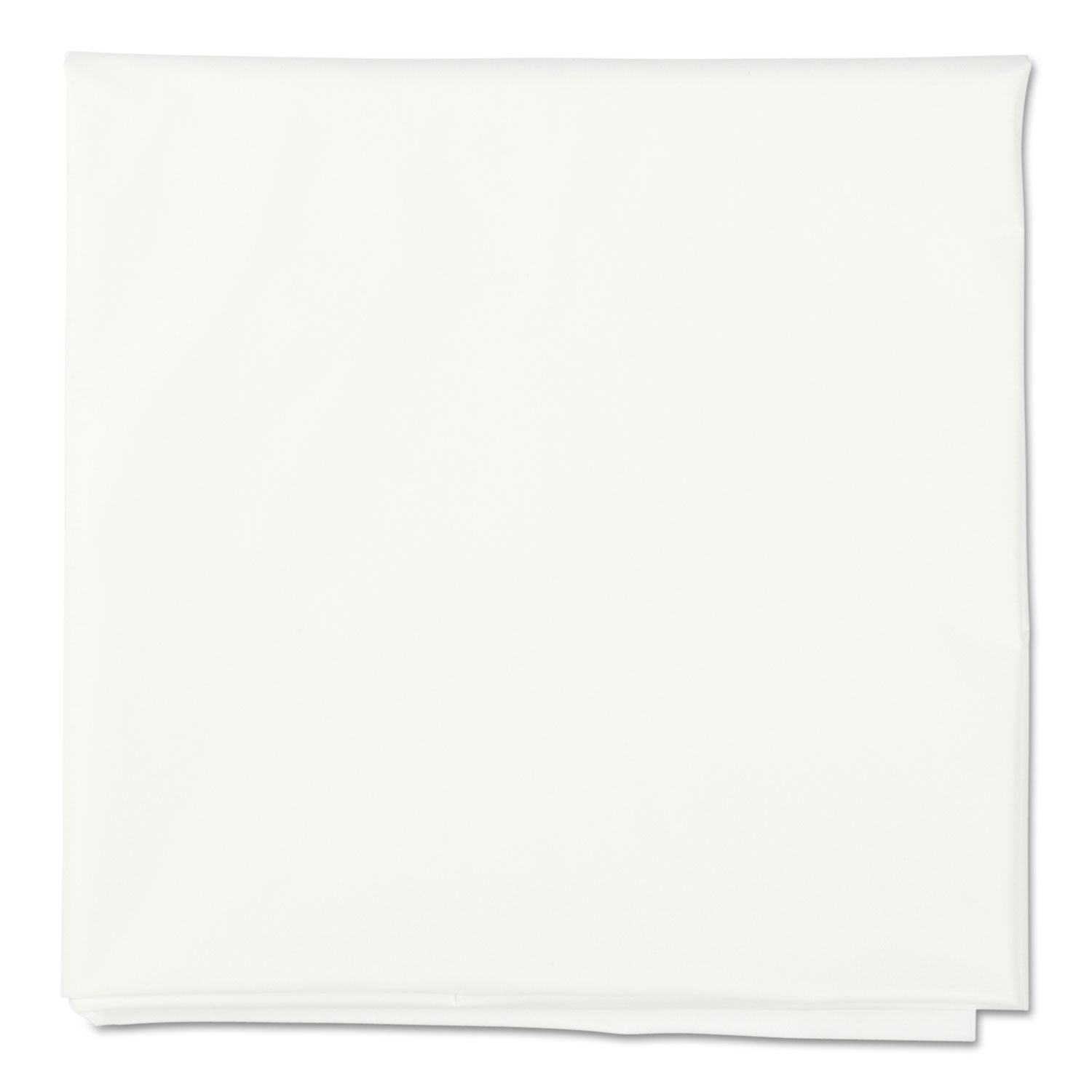 Tablecover adds elegance to any occasion. More sanitary than bare table surfaces. Individually wrapped for cleanliness and increased shelf life. Shape: Round; Material(s): Plastic; Color(s): White; Diameter: 82".