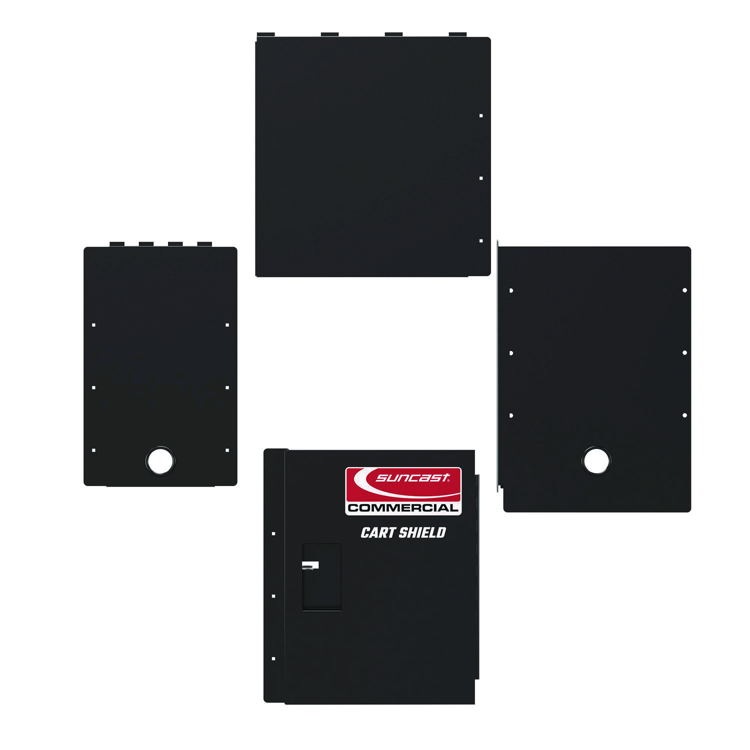 The cart shield includes four steel panels that are easy to install on your Suncast Commercial utility carts. You can easily run power cords to the inside, through a small port, while still keeping your tools for your job inside and out of sight. Accessory Type: Door; Width: 3.75"; Depth: 25.59"; Height: 27.39".